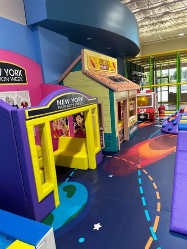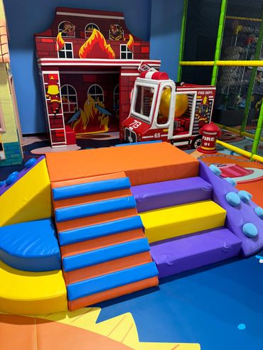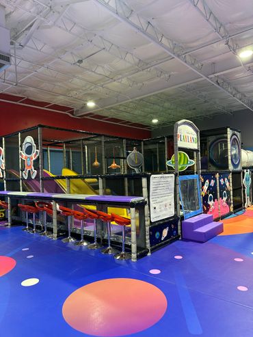 Our almost 18,000 SF has a variety of play areas designed for children of all ages, including ball pits, climbing structures, soccer field , game, bikes, and a soft play area for toddlers. We also have a snack bar, cold sandwiches and seating area for parents to relax and watch their kids play.